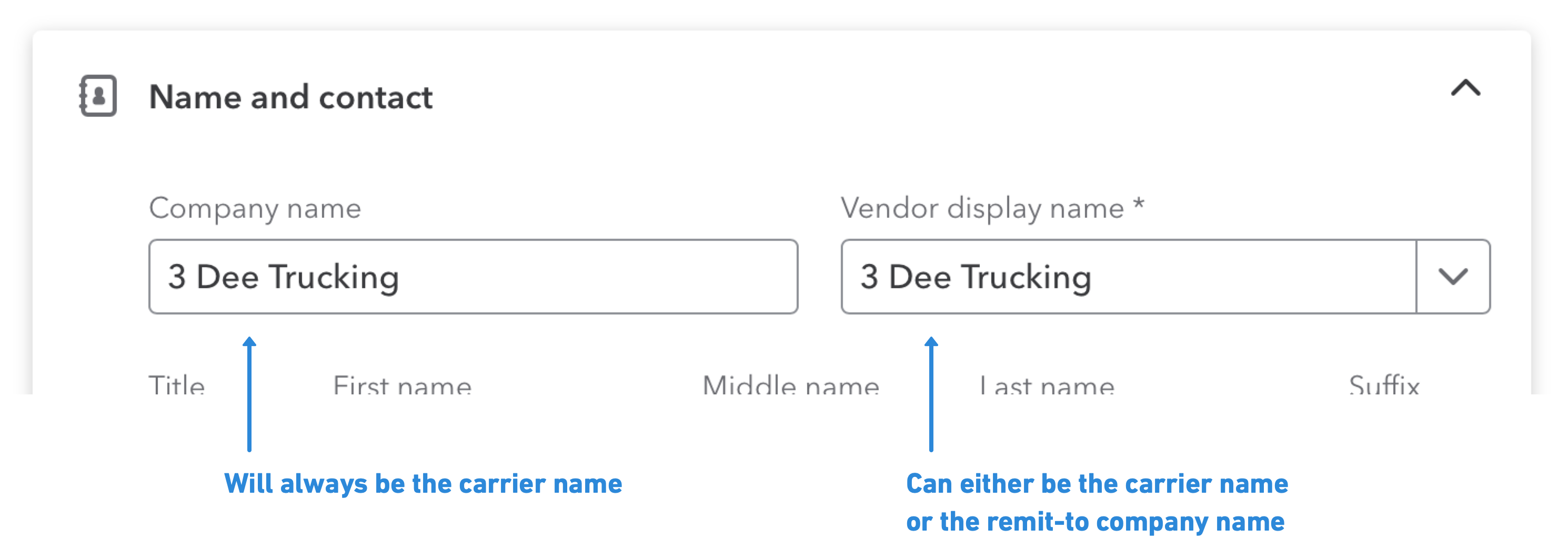 - We use the carrier's name, even if you entered their pay-to address as a factoring company.